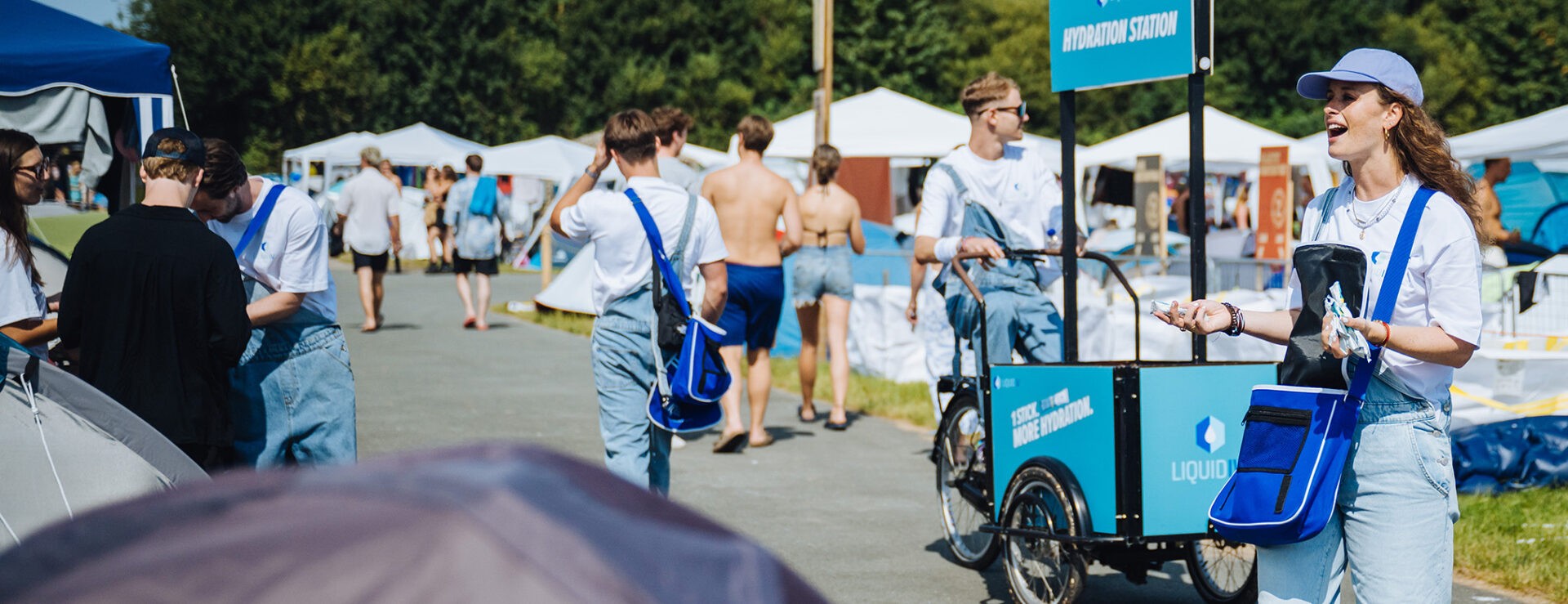Ons antwoord: een veelzijdig concept dat festivalbezoekers hydrateert en informeert, maar daarnaast ook opvalt en overal op het festivalterrein te vinden is. The Liquid I.V. Hydration Station was dé plek om te hydrateren en te chillen op meerdaagse festivals Lowlands en Down The Rabbit Hole. Bezoekers konden bij de bar terecht voor een Liquid I.V.-stick bij aankoop van hun water of mocktail. Om ervoor te zorgen dat elk type feestbeest de dag gehydrateerd kon beginnen óf afsluiten, was de activatie van ‘s ochtends vroeg 10:00 uur tot diep in de nacht 05:00 uur geopend. Daarnaast reden er speciale Liquid I.V. bakfietsen over het campingterrein om gratis samples uit te delen. Zo werden bezoekers ook buiten The Hydration Station bereikt.